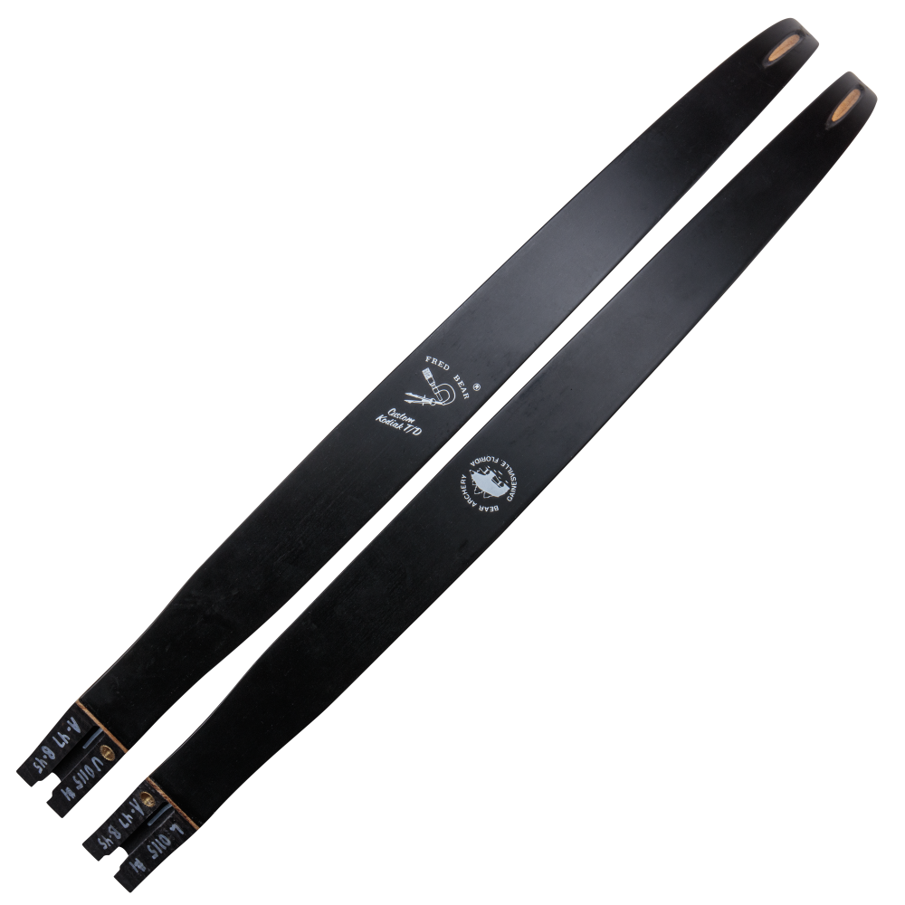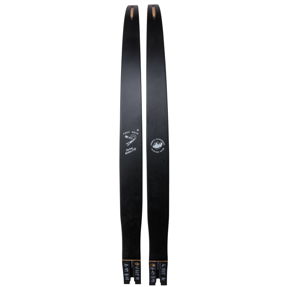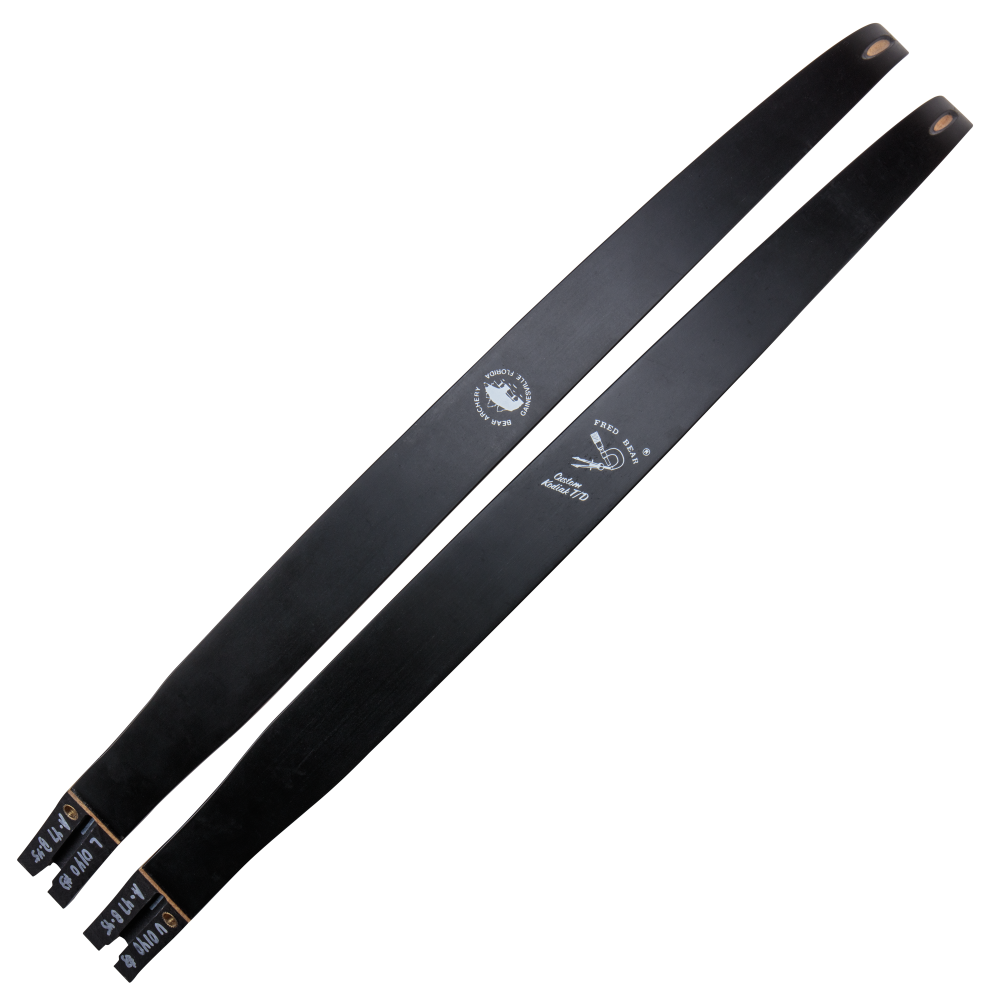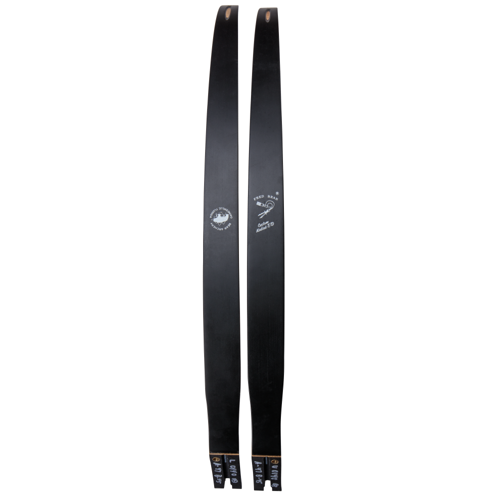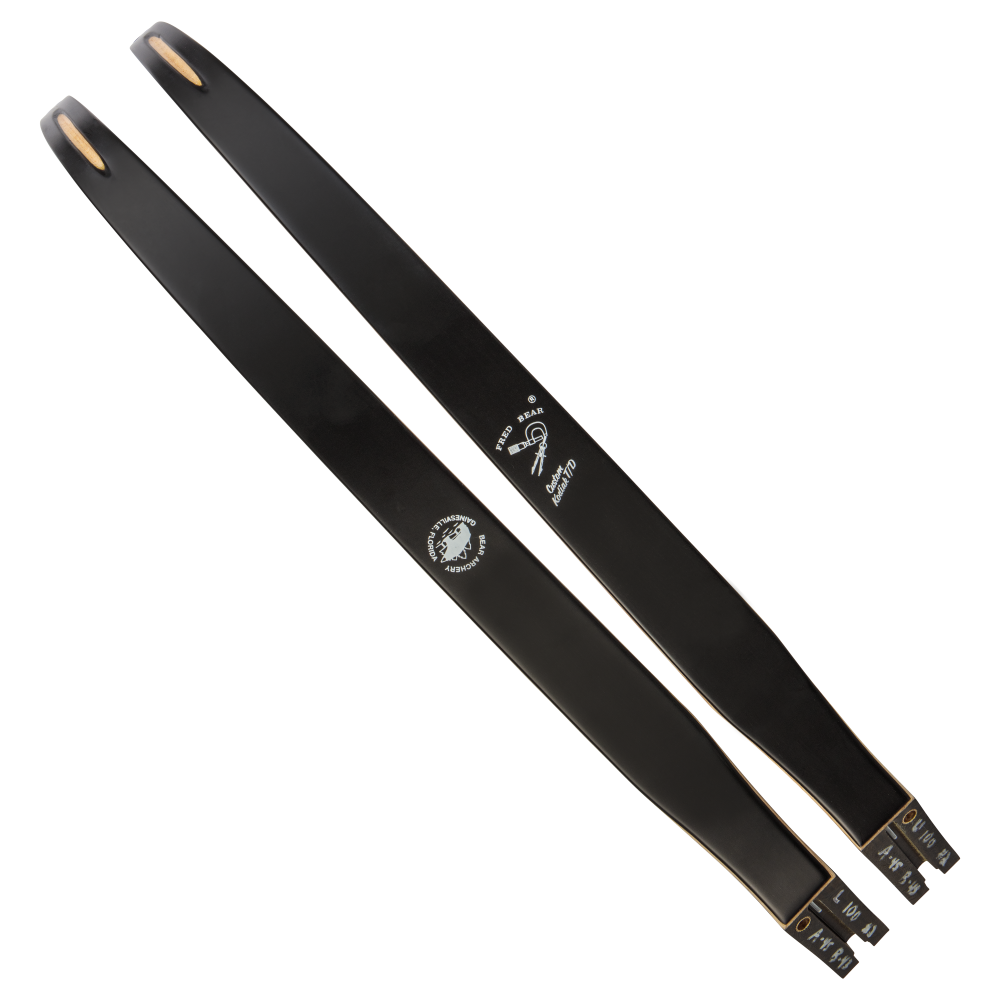 Years ahead of their time, Fred Bear's Take Down Limbs brought the industry a new technology and superior performance. Today, these Take Down Limbs are constructed of layered hard rock maple and black fiberglass, and handcrafted tips that are reinforced with black and white fiberglass to accommodate modern strings. Take Down Limbs are available in three lengths: #1, #2, and #3 limbs. The #1 limbs will make a 56 bow on an A-Riser, 58" bow on an Eichler Riser, and a 60 bow with a B-Riser. The #2 limbs will make a 58 bow on an A-Riser, 60" bow on an Eichler Riser, and a 62 bow with a B-Riser. The #3 limbs will make a 60 bow on an A-Riser, 62" bow on an Eichler Riser, and a 64 bow with a B-Riser.
