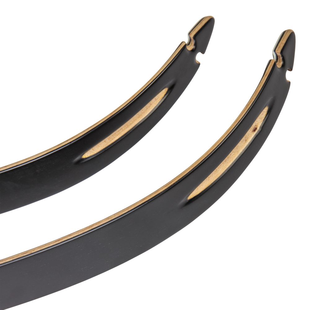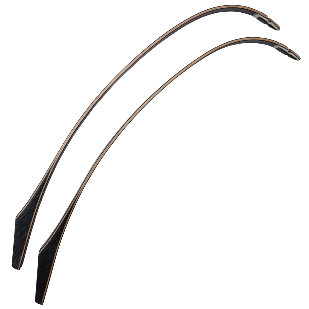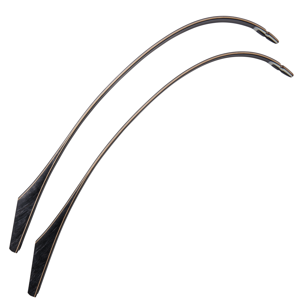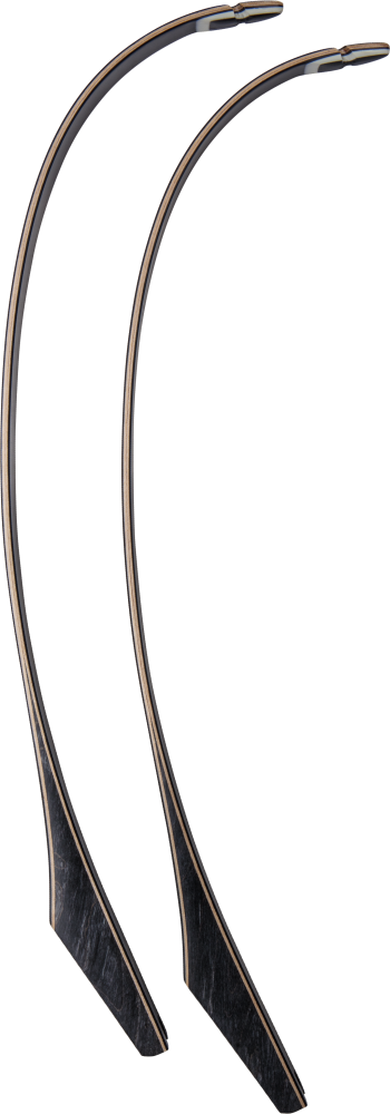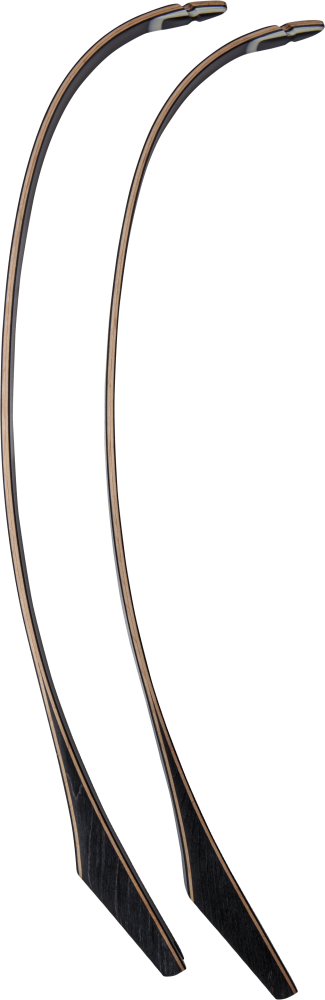 Years ahead of their time, Fred Bear's Take Down Limbs brought the industry a new technology and superior performance. Today, these Take Down Limbs are constructed of layered hard rock maple and black fiberglass, and handcrafted tips that are reinforced with black and white fiberglass to accommodate modern strings. Take Down Limbs are available in three lengths: #1, #2, and #3 limbs. The #1 limbs will make a 56 bow on an A-Riser, 58" bow on an Eichler Riser, and a 60 bow with a B-Riser. The #2 limbs will make a 58 bow on an A-Riser, 60" bow on an Eichler Riser, and a 62 bow with a B-Riser. The #3 limbs will make a 60 bow on an A-Riser, 62" bow on an Eichler Riser, and a 64 bow with a B-Riser.