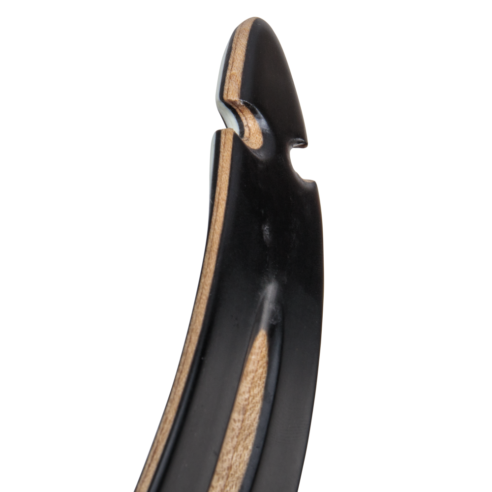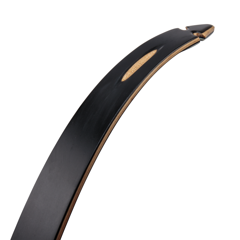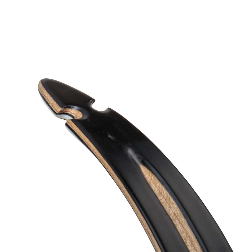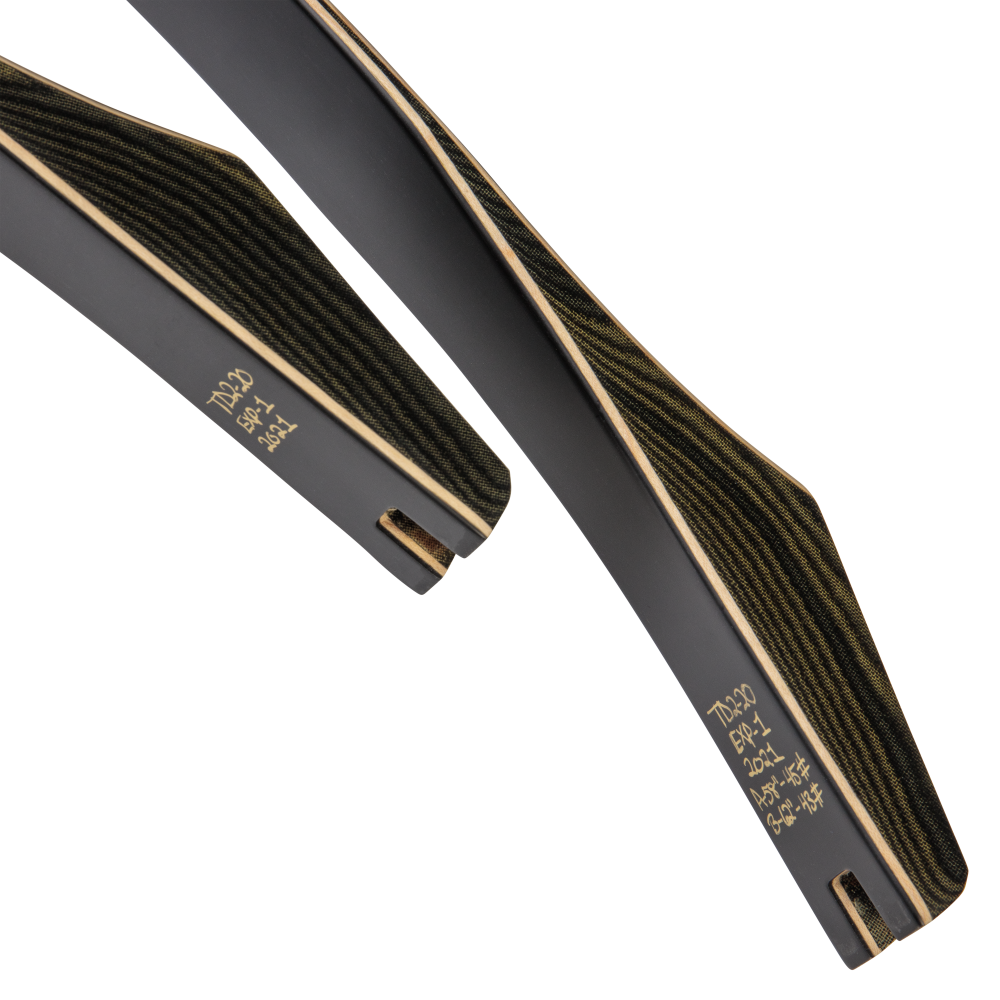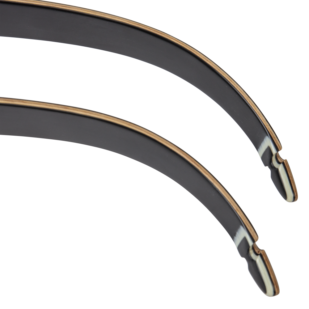 Years ahead of their time, Fred Bear's Take Down Limbs brought the industry a new technology and superior performance. Today, these Take Down Limbs are constructed of layered hard rock maple and black fiberglass, and handcrafted tips that are reinforced with black and white fiberglass to accommodate modern strings. Take Down Limbs are available in three lengths: #1, #2, and #3 limbs. The #1 limbs will make a 56 bow on an A-Riser, 58" bow on an Eichler Riser, and a 60 bow with a B-Riser. The #2 limbs will make a 58 bow on an A-Riser, 60" bow on an Eichler Riser, and a 62 bow with a B-Riser. The #3 limbs will make a 60 bow on an A-Riser, 62" bow on an Eichler Riser, and a 64 bow with a B-Riser.