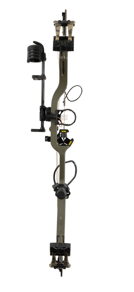 Meet the most efficient, highly adjustable bow on the market - the Legend XR. With a stable 32" axle-to-axle, this smooth drawing hybrid-cam delivers the ultimate shooting experience. The 85% let off from the new DHC-XR cam and 6 1/4" brace height make the Legend XR incredibly easy to shoot and comfortable regardless of whether you're at the range or in the backcountry. Featuring the Bear Paw grip for 2024, this addition provides a familiar and stable foundation for every shot. The XR can accommodate draw weights from 15 lbs to 70 lbs and stretches from 18" to 31" in draw length - more adjustability that any previous Legend model. The new Legend XR offers shooters immense value with its offset string suppressor, ergonomic Bear Paw grip, and KILLERwave in-limb dampeners to help reduce vibration and noise in every shot. Ready to Hunt accessories from Trophy Ridge including a 4-pin sight, Whisker Biscuit V, 5-Spot quiver, stabilizer, peep sight, and D-loop.