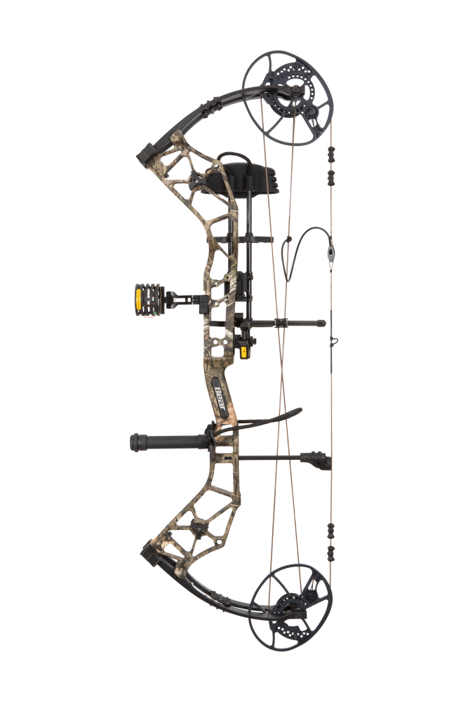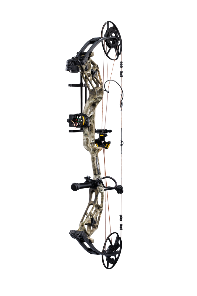 Trend setting ready to hunt package includes an integrated 4 pin sight and and the Integrate Mounting System V-biscuit rest