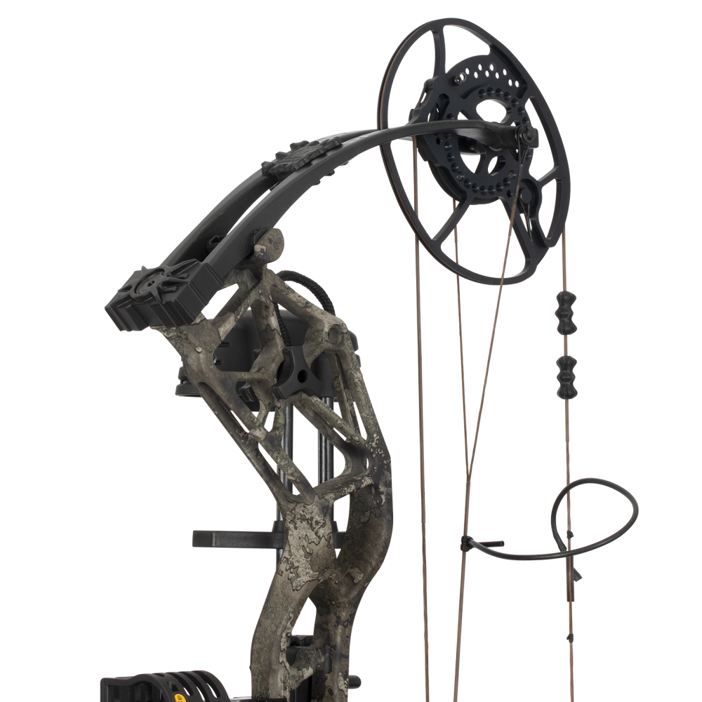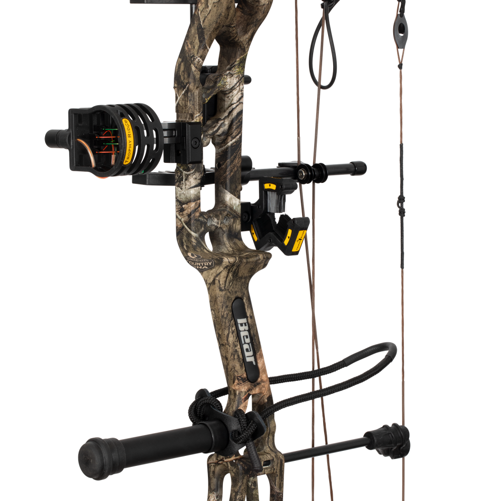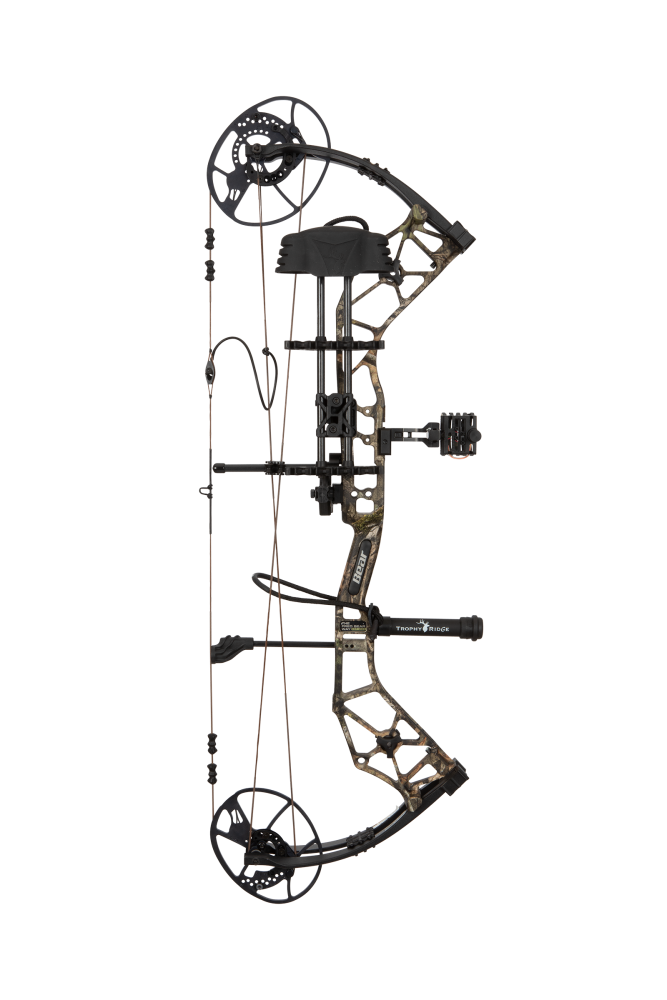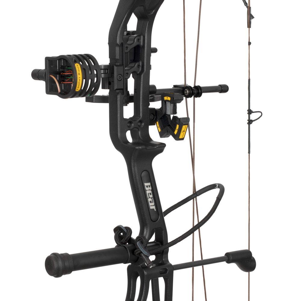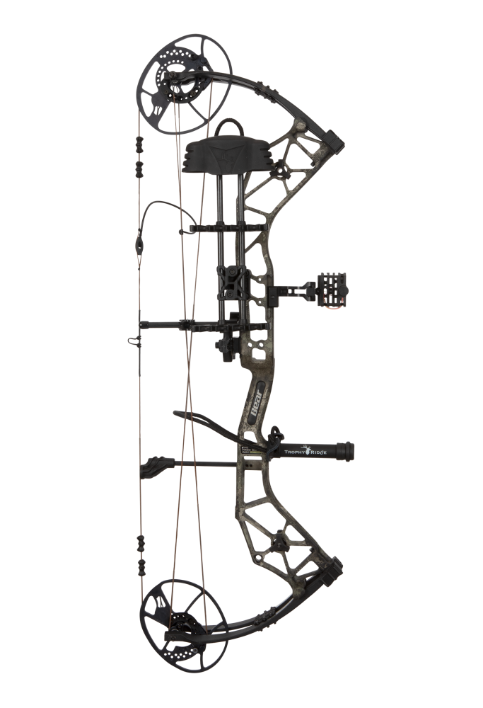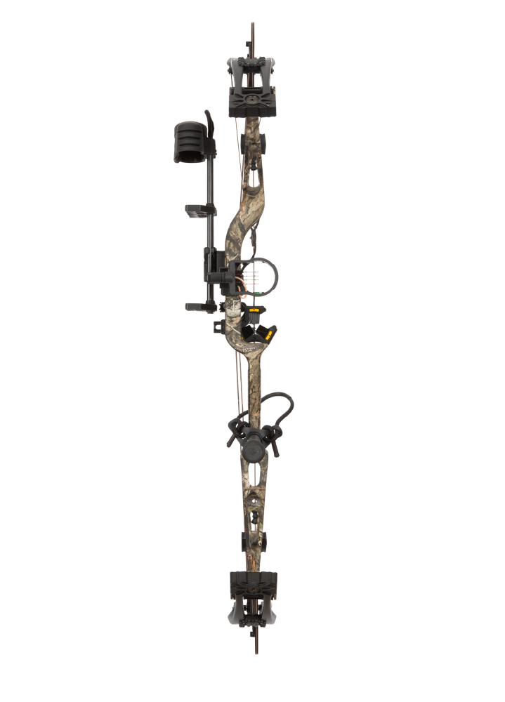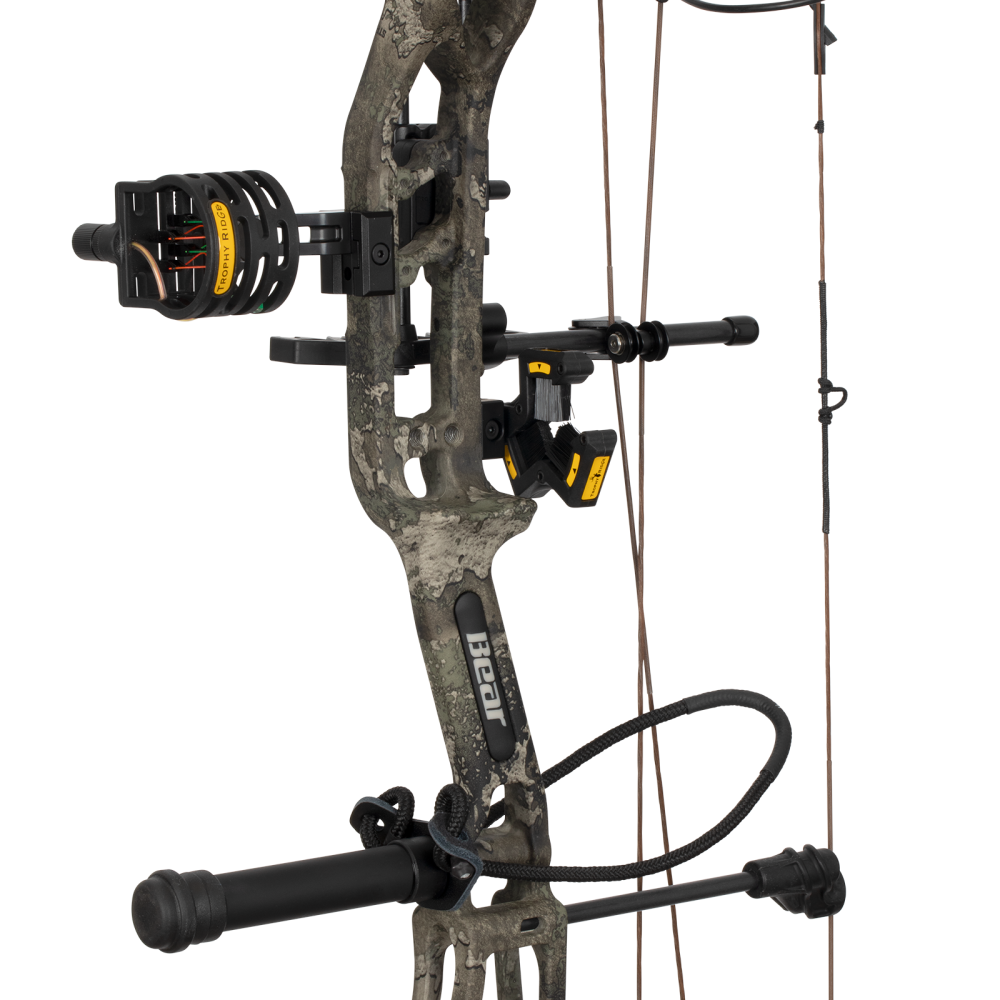 The new Paradigm RTH from Bear Archery sets a whole new standard for ready to hunt bows. Featuring a new integrated Fatal 4 sight and the Integrate Mounting System Whisker Biscuit V arrow rest from Trophy Ridge; there has never been a more streamlined set-up from the factory. The Paradigm is powered by the ultra-efficient DHC cam system capable of speeds up to 333fps, while being adjustable from 27"-32" of draw length. To help you make every shot count, the Paradigm measures 33 inches axle-to-axle and sports a brace height of 6.5 inches to maximize forgiveness. New cable guard roller system and in riser dampeners give this bow high end features that are unmatched in its price range. Trophy Ridge Package includes: integrated 4-pin sight, IMS Whisker Biscuit V, 5-Spot quiver, stabilizer, peep sight, and D-loop.