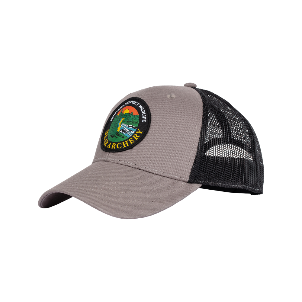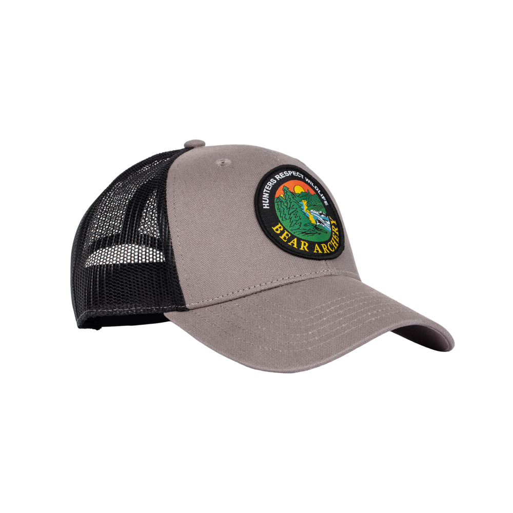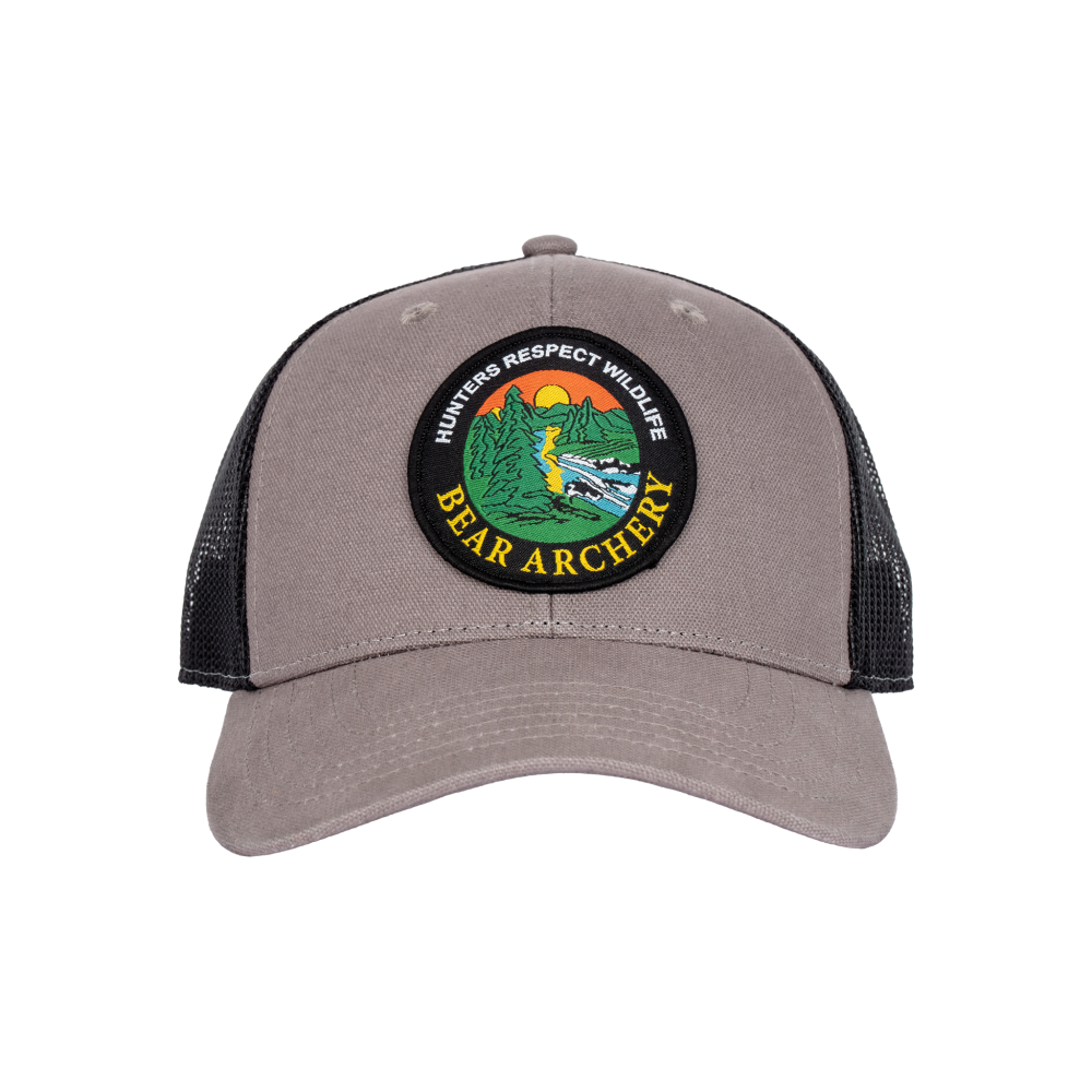 Clean, classic, and built for everyday wear. This sleek black and gray trucker hat features a reproduction of the vintage Hunters Respect Wildlife patch from the original Fred Bear Sports Club. The structured foam front keeps its shape, while the breathable mesh back provides all-day comfort. Finished with an adjustable snapback closure for the perfect fit, its a timeless cap that works just as well on the job as it does off the clock.
