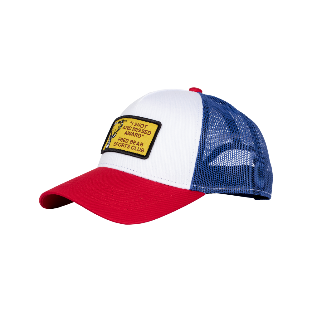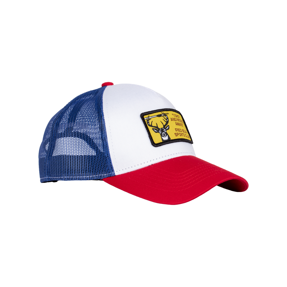 Throw it back with this nostalgic, vintage-inspired hat in red, white, and blue. Featuring a copy of the iconic I Shot and Missed Award patch from the original Fred Bear Sports Club, this retro-style hat blends heritage charm with modern comfort. With an adjustable strap, breathable mesh, and embroidery details, this trucker hat is perfect for sunny days, casual outings, or outdoor adventures.