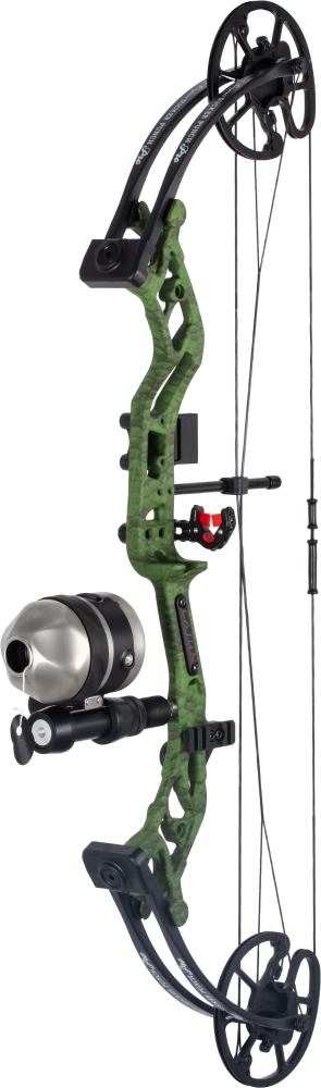 RTF Kit includes Cajun Reclaim Reel, Brush Fire Arrow Rest, (1) Red Fiberglass Piranha Arrow, along with Sight and Riser Mounted Picatinny Rail/Line Puller -