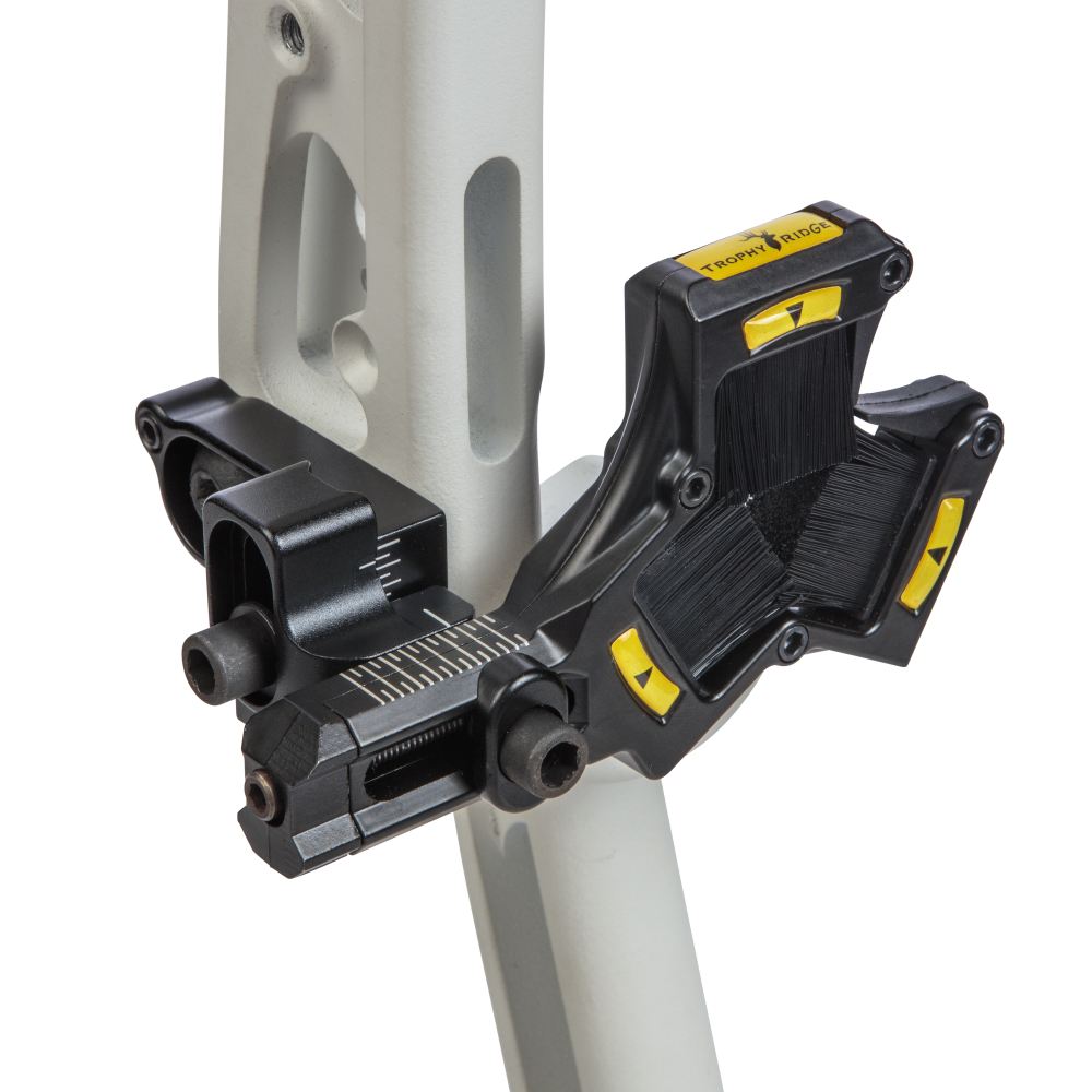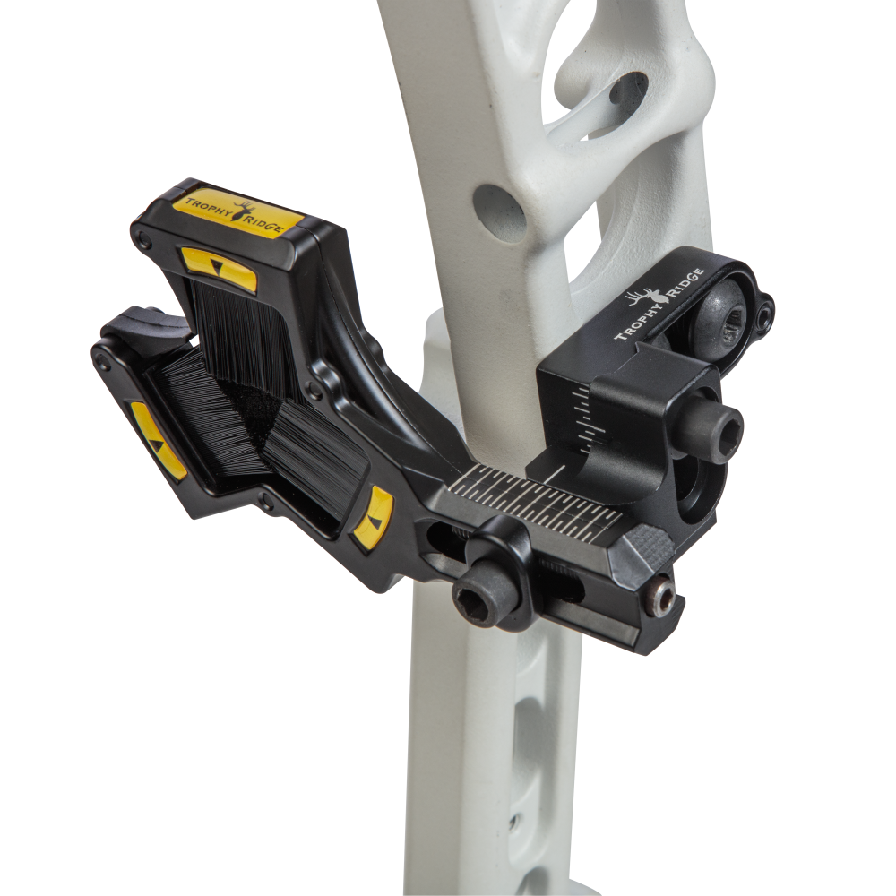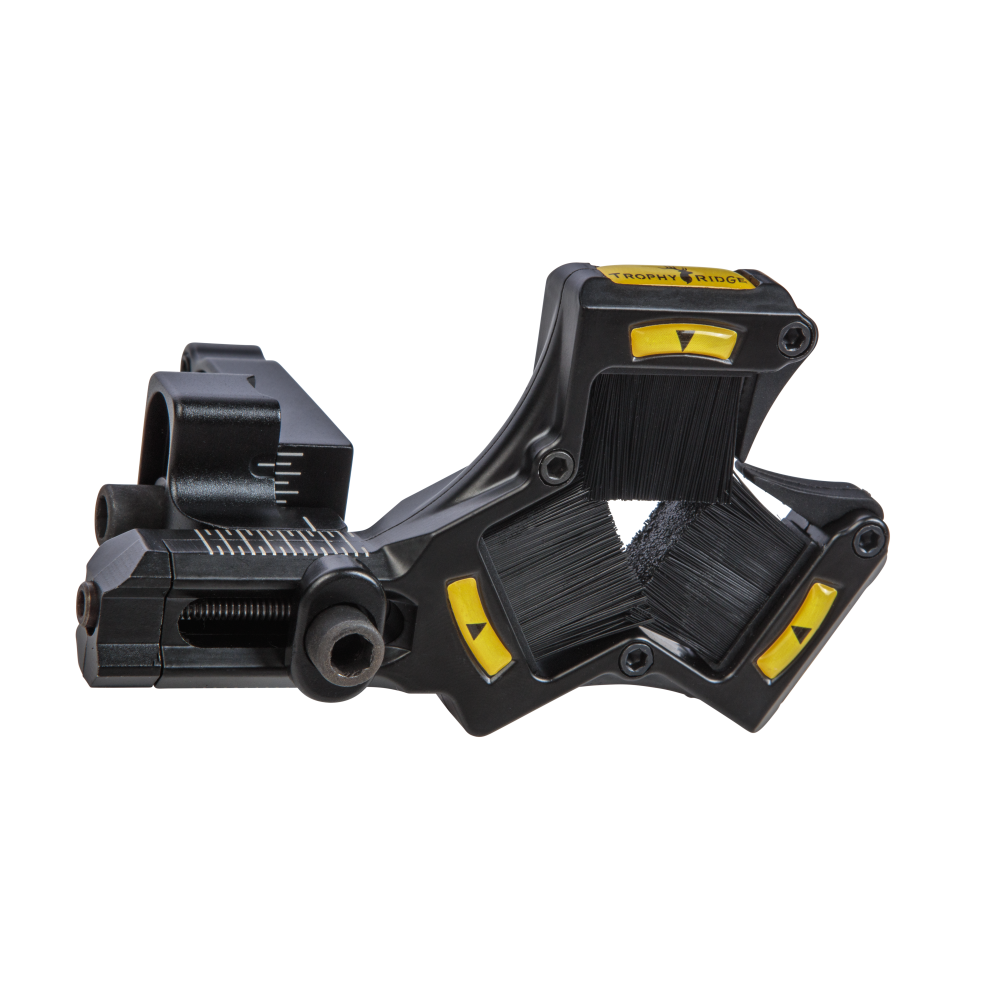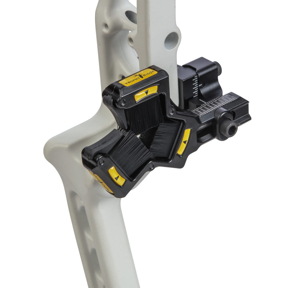 Maker of the world’s most-popular arrow rest, the original Whisker Biscuit; Trophy Ridge introduces the Whisker Biscuit V Max. The innovative V-shaped design naturally centers the arrow using only two points of contact, eliminating side-to-side arrow movement, resulting in consistent arrow trajectory shot after shot. The Whisker Biscuit V Max’s perpendicular bristles reduce vane drag and allow the arrow to slice through the bristles with ease, maintaining velocity with every shot. This incredibly accurate and consistent arrow rest makes tuning a breeze with its advanced tool-less micro windage and elevation adjustments and convenient laser-engraved reference marks on the aluminum housing.